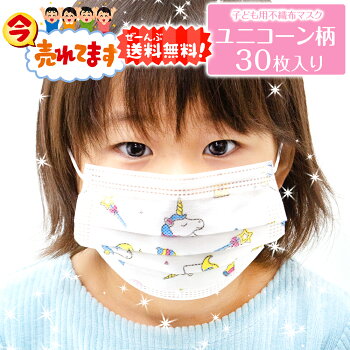 送料無料 かわいい 子ども用 使い捨てマスク ユニコーン柄 30枚入り 不織布マスク ノーズフィッター EXPROUD ユニコーン