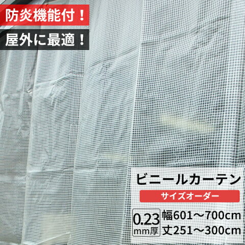 [本日全商品ポイント5倍] ビニールカーテン 屋外 防炎 耐寒 防寒 難燃性 0.23mm厚 幅601〜700cm 丈251〜300cm 糸入り 強度 防風 防雪 寒冷地 防虫 防塵 紫外線 PP製 間仕切 サイズオーダー 【FT09】 JQ