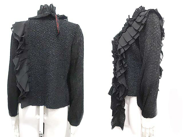 【未使用】【新古品】NOKO OHNO ノコ オーノ トップス カーディガン レディース ブラック プリーツ ラインストーン LLサイズ 定価57000円
