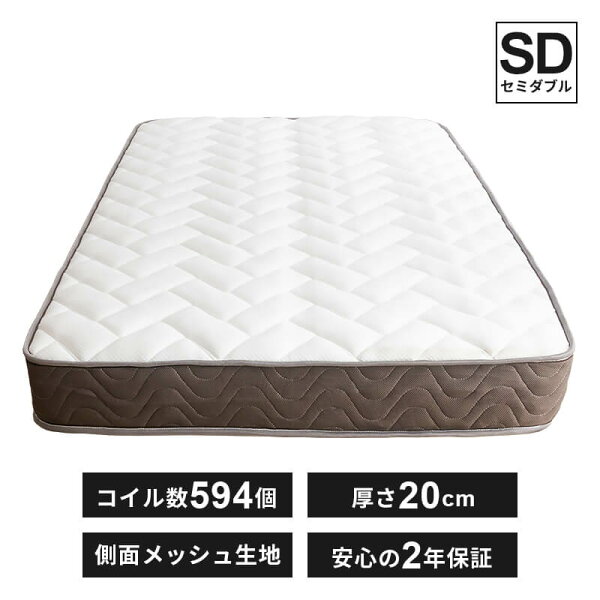 サイズ 幅120×長さ195×厚み21cm 仕様 外装生地:ポリエステル100% 本体:ポケットコイルスプリング コイル数(セミダブル594個) 詰め物:ウレタンフォーム、不織布、フェルト 備考 ※マットレスは、圧縮ロールされた状態でお届けいたします。