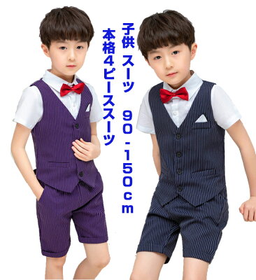 子供スーツ 男の子 半袖 セットアップ キッズ 上下セット フォーマル 半袖 卒園 入園式 発表会 結婚式 ベスト+ズボン+シャツ 4点セット 卒業式