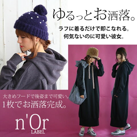 何気ない可愛さでお洒落を確立する≪n'OrLABEL≫フード付きコクーンワンピースです。
