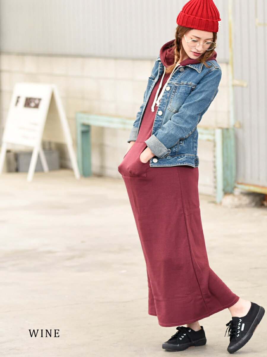 暖かいふんわり裏起毛のパーカーワンピ! ロング丈とヒザ丈で新色も登場! ルームウェアとしてお部屋でまったりもできる、 リラックスストレッチあったかワンピ。