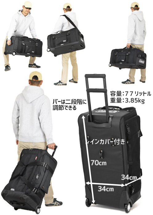 【楽天ランキング受賞】コールマン Coleman ボストンキャリーバッグ 77リットル キャスター付き ボストンバッグ キャリーバッグ レインカバー付き 2輪 3WAY 男子 女子 修学旅行 林間学校 キャンプ 14-10