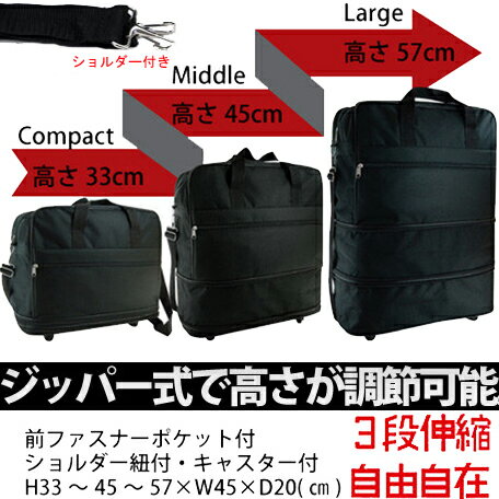 A576■お宝発見!【エクステンションキャリー】3段階伸縮キャスター付伸び縮みキャリーバック〜ショルダ−バッグEXTENSION CARRY[NO.89950]ボストンバッグボストンキャリービュー大きさが変えられる3段階の拡張機能.