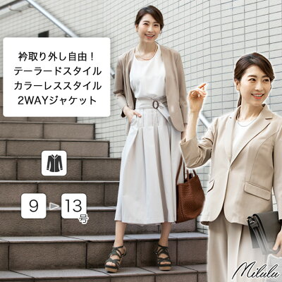 ジャケット 単品 レディース ショート丈 夏 七分袖 サマー 春 上着 おしゃれ サマージャケット ママ 洗える ウオッシャブル ストレッチ 白 紺 テーラード ノーカラー カラーレス 2WAY 襟取り外し ジャケット